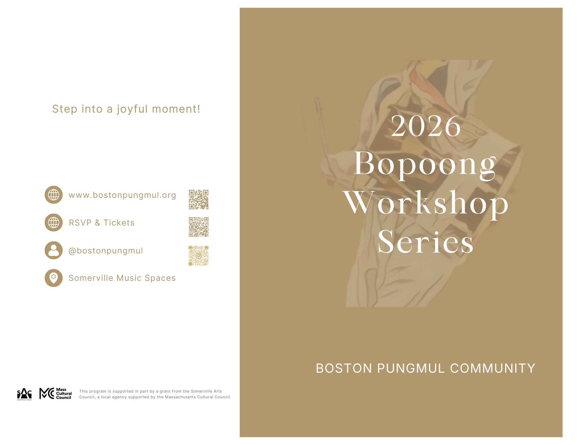 This program is supported in part by a grant from the Somerville Arts Council, a local agency supported by the Massachusetts Cultural Council.